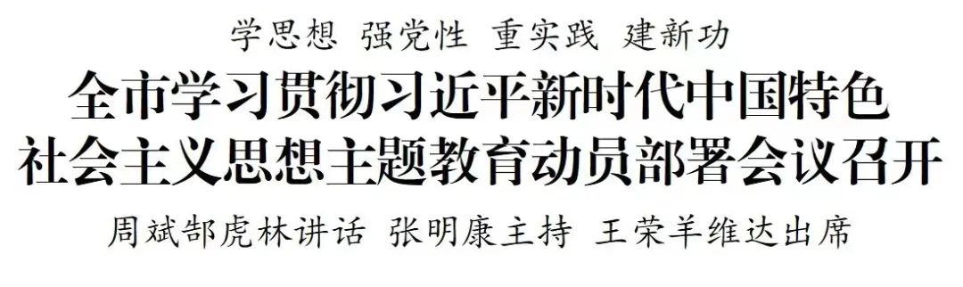9月14日,全市學(xué)習(xí)貫徹習(xí)近平新時代中國特色社會主義思想主題教育動員部署會議召開。會議堅持以習(xí)近平新時代中國特色社會主義思想為指導(dǎo),深入學(xué)習(xí)貫徹習(xí)近平總書記在中央主題教育工作會議上的重要講話精神,按照中央和省委第一批主題教育總結(jié)暨第二批主題教育動員部署會議要求,對全市開展主題教育進(jìn)行動員部署。市委書記周斌,省委主題教育第九巡回督導(dǎo)組組長郜虎林出席會議并講話。市委副書記、市長張明康主持,省委主題教育第九巡回督導(dǎo)組副組長錢學(xué)偉,市人大常委會主任王榮,市委副書記、統(tǒng)戰(zhàn)部部長羊維達(dá)出席會議。